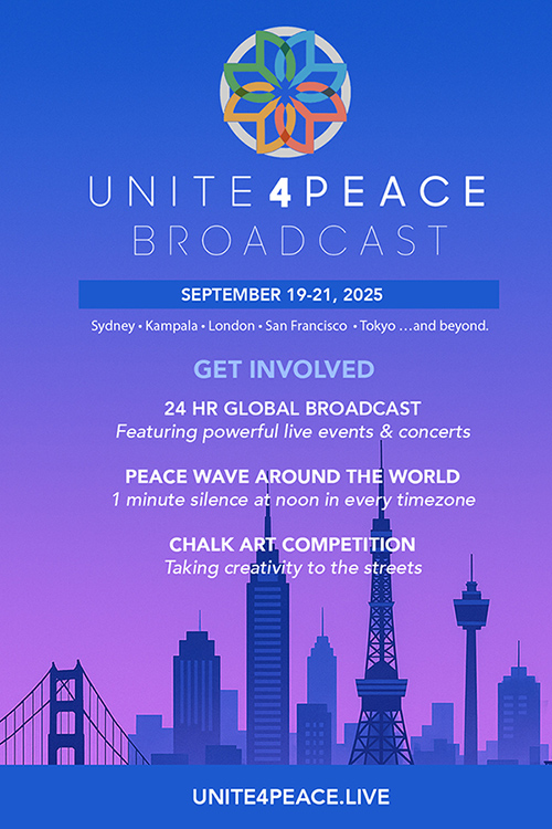 From September 19–21, 2025, the world will gather for the Unite 4 Peace Global Peace Broadcast—a 48-hour, interactive celebration honoring Pathways to Peace, co-founders of the United Nations’ International Day of Peace and their 40 years of pioneering peacebuilding.
